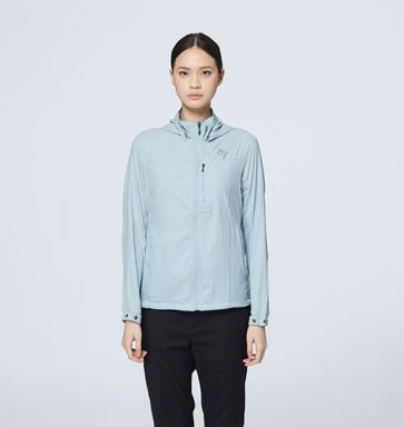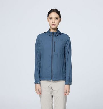 女彈性透氣抗UV涼感輕薄外套 適用 : 出國、旅行、戶外活動 顏色 : 170 希臘藍、198 迷霧綠、205 野玫瑰粉、207 冷溪藍 版型 : 修身版型 布種特性 : •冰絲涼感•吸排快乾•抗UV30+ 產品特性 :•前中拉鍊上方擋風拌帶設計,在拉鍊打開通風時可簡易固定•可拆帽,帽前緣打褶無束繩更加包覆輕巧,帽後方馬尾開洞•前中.前脇配色拉鍊 •衣服可整件收納於左下袋,輕巧,隨身好攜帶 •左胸經典鹿頭繡花,右後袖LOGO繡花•左胸拉鍊開袋設計•袖下切線設計,增加活動量