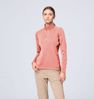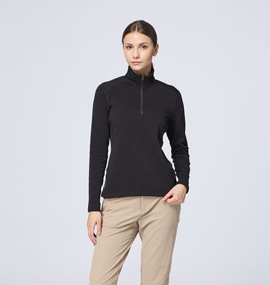 女Polartec PSP彈性半開襟極暖衣 適用 : 郊山、出國、旅行、露營、戶外活動 顏色 : 54黑色、221裸霧粉、223暮嶺藍 適用溫度參考 : 0°C~ 10°C 布種特性 : Polartec®Stretch Pro®動態延展、緊實支撐 高彈性、貼身舒適、內刷毛保暖、耐磨性強、 良好排汗透氣、快乾易洗 產品特性 : 前中拉鍊深淺配色+POLARTEC織標拉耳/ 右胸經典鹿頭繡花/衣身剪接修飾線條,/左袖POLARTEC印花