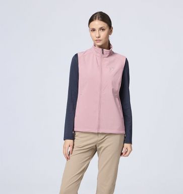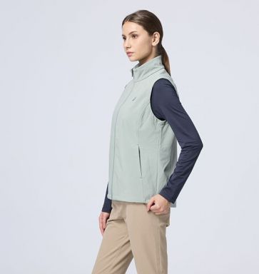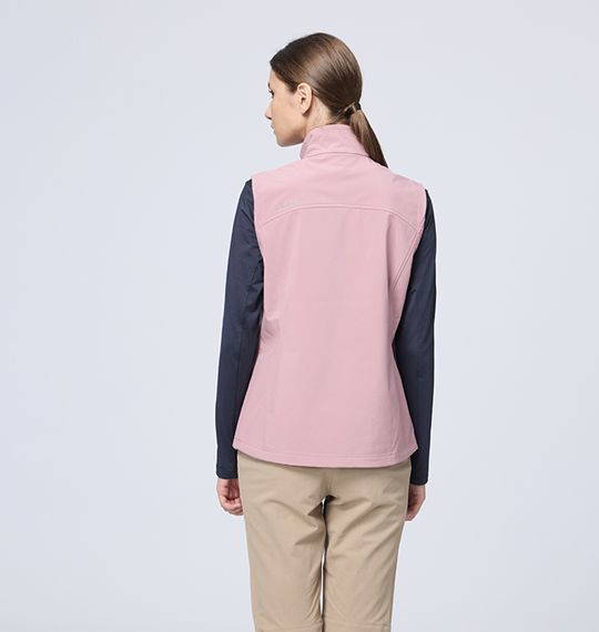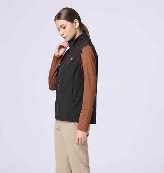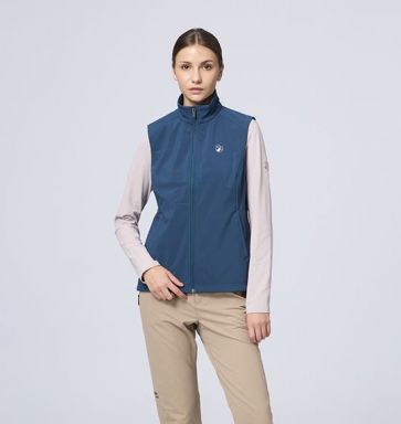 女彈性超輕三層山旅機能背心 (原W2701) 適用 : 百岳、郊山、出國、旅行、戶外活動、商務 適用溫度 : 5°C~ 10°C 商品重量 : M號重量:256g 顏色 : 134孔雀藍、148皇室黑、175秀姑藍山、205野玫瑰粉、216玉璽綠 布種特性 : #超潑超輕軟殼背心 功能-輕量、防風、超潑水、布面本身防水(但無防水貼條) 內層-保暖親膚內刷毛 彈性-四向彈性 版型 : 修身挺版 產品特性 : 前下兩側拉鍊口袋+經典LOGO拉耳/ 前下口袋開口上下配色打結/左胸鹿頭繡花/ 左後上LOGO繡花/下擺鬆緊丸繩可調節