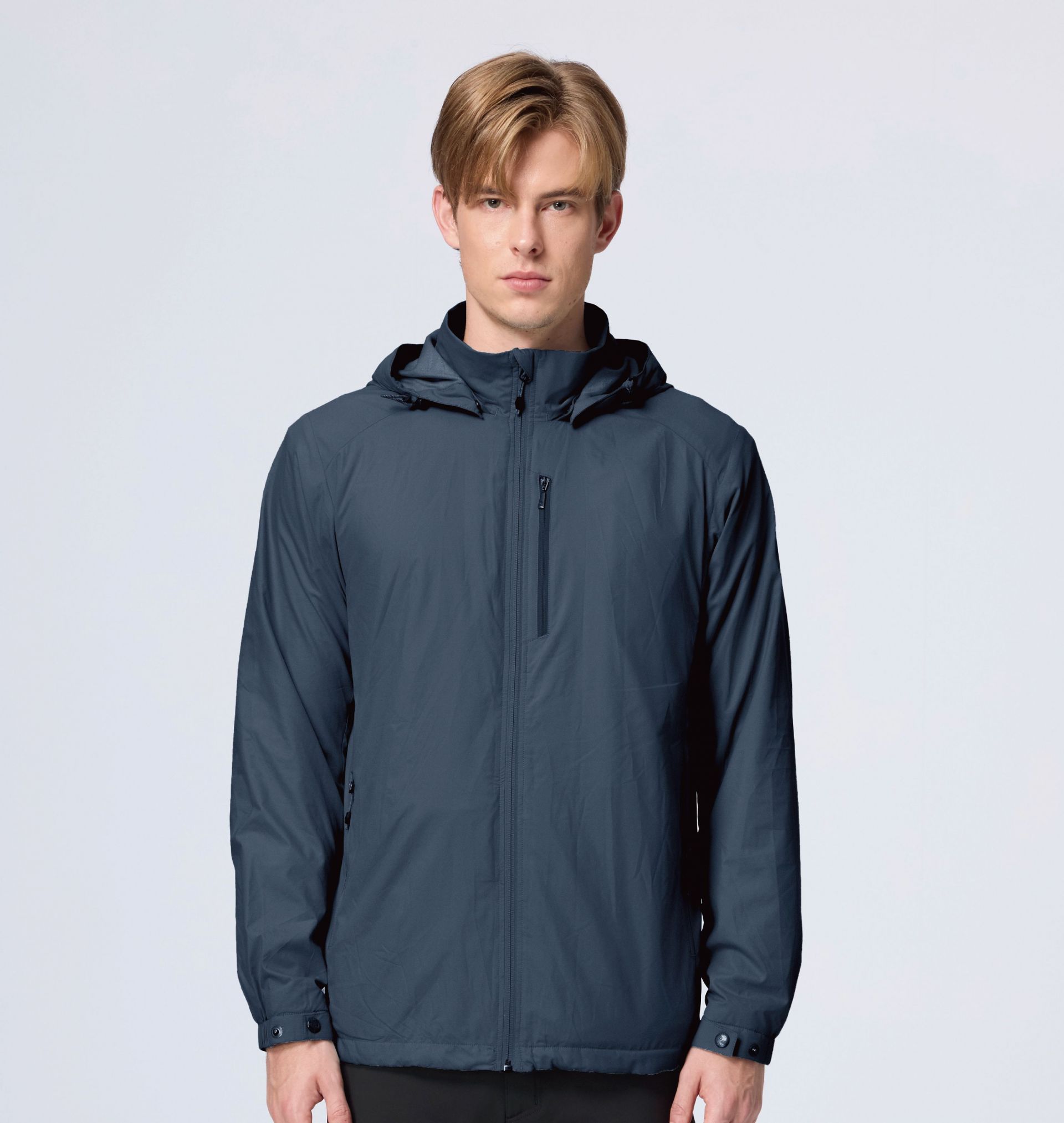 兩側拉鍊開袋口袋加Logo拉耳/帽可拆式/帽緣可調節/袖口鬆緊帶加彈簧扣可自由調節鬆緊/