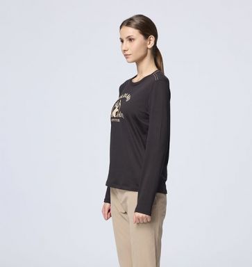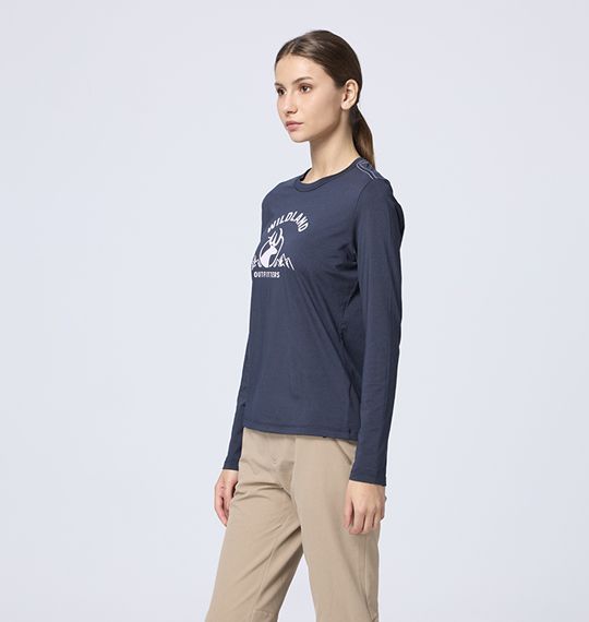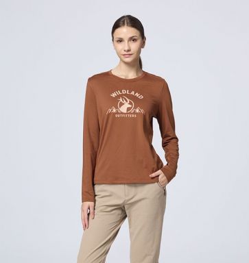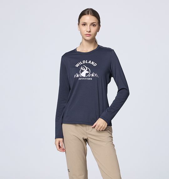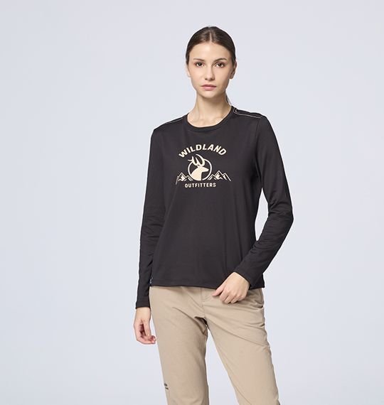 女彈性圓領暖感印花機能衣 適用 :郊山、出國、旅行、露營、戶外活動、徒步 顏色 : 54黑色、181夜空藍、191紅茶、196霧灰色 重量 :M號重量:216g 布種特性 : 四彈-彈性佳、內外手感柔軟舒適、不易皺變形 產品特性 : 圓領/後領配色扒線/ 荒野LOGO印花設計