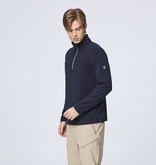 男彈性雙面刷毛PILE機能保暖衣 適用 :出國、旅行、露營、戶外活動 顏色 : 219沙岩色、223暮嶺藍、225霧青色 適用溫度參考 : 5°C~10°C 版型 : 標準版型 重量 :L號重量:275g 布種特性 : 彈性、奈米銀粒子纖維、抗菌、遠紅外線與負離子功能蓄熱保暖 產品特性 : 前中尼龍反通頭配色拉鍊/領內配色設計/ 右胸剪接LOGO繡花/左臂鹿頭繡花/後領丸繩領吊設計