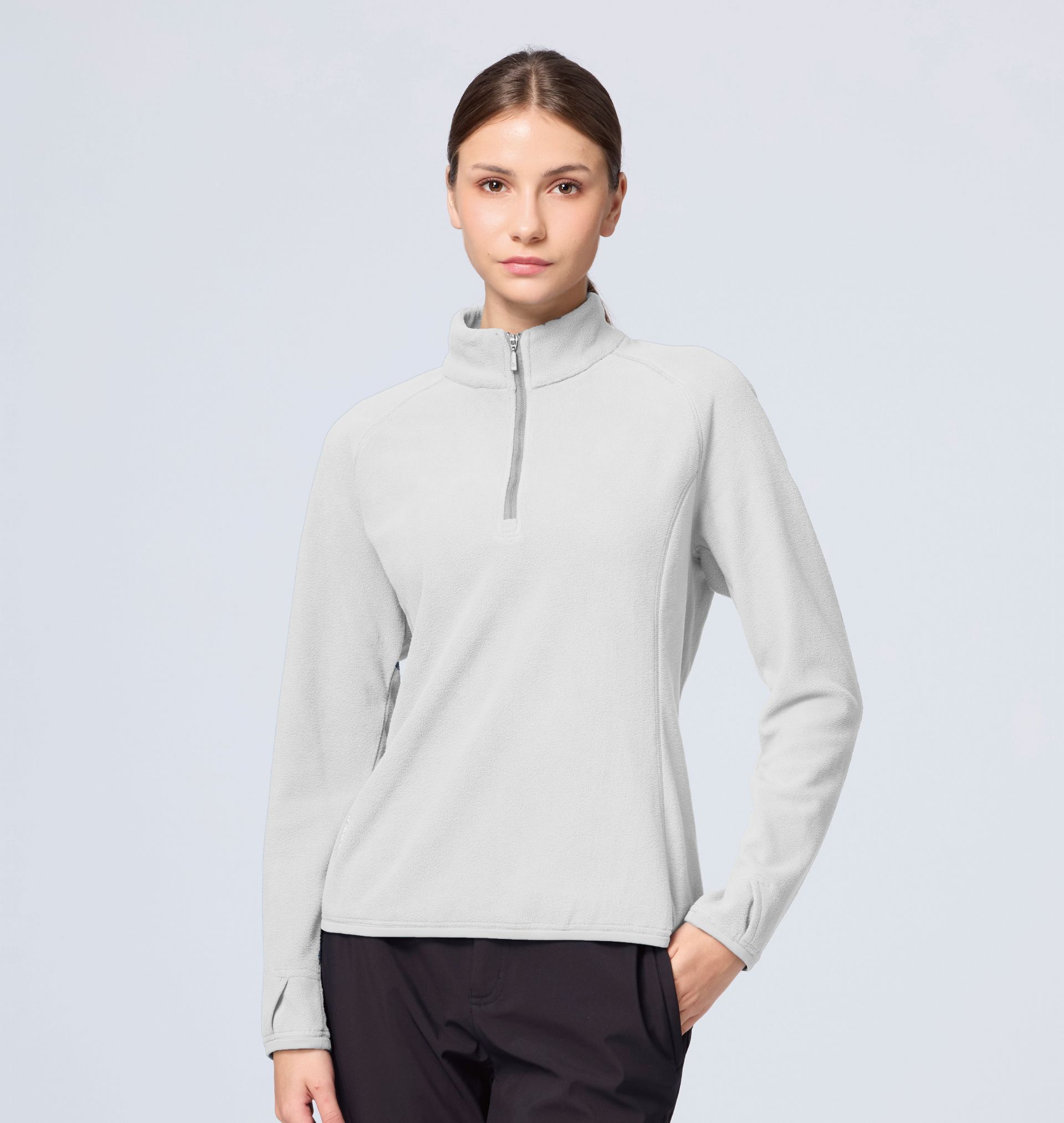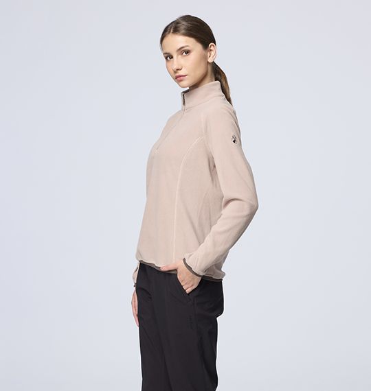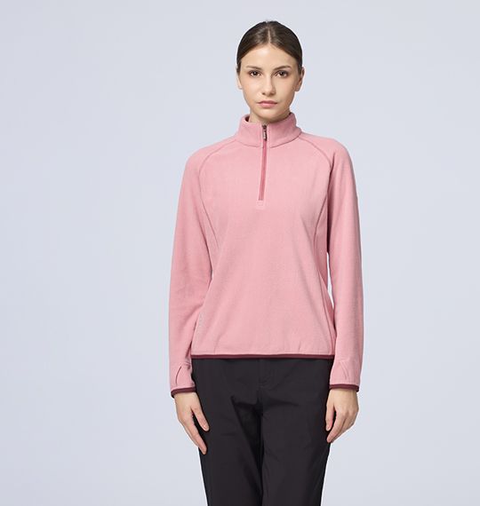女彈性雙面刷毛PILE直筒保暖衣 適用 :出國、旅行、露營、戶外活動 顏色 : 160冰山灰、219沙岩色、221裸霧粉、223暮嶺藍、225霧青色 適用溫度參考 : 5°C~10°C 版型 :直筒版型 重量 :M號重量:230g 布種特性 : 彈性、奈米銀粒子纖維、抗菌、遠紅外線與負離子功能蓄熱保暖 產品特性 : 前中配色拉鍊/領內側.袖口.下擺搭配針織布設計/ 袖口開拇指洞設計/後領丸繩領吊設計