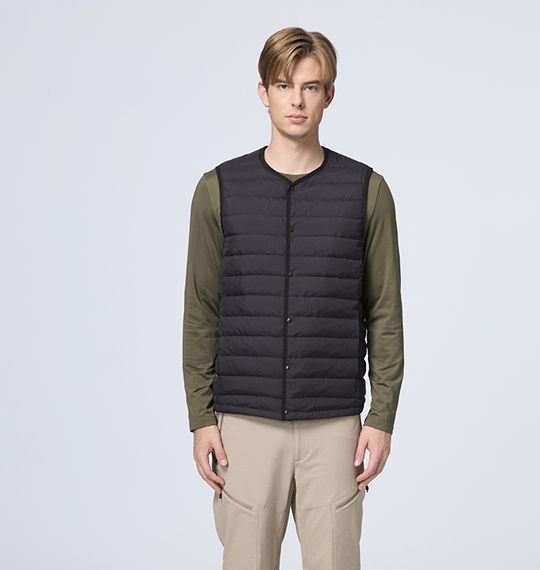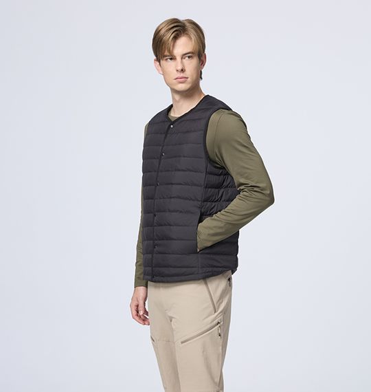 男700FP輕暖V領羽絨背心 適用 :出國、旅行、露營、商務 顏色 : 148皇室黑、202能高綠、225霧青色 重量 :L號重量:165g 適用溫度參考 : 5~10°C 版型 :合身版型 布種特性 : 材質-20D表布(尼龍100%) 功能-防風防潑水、透氣彈性、輕量保暖 內裡-700FP、JIS90/11水鳥羽絨 *搭配防風外套保暖效果加倍提升 產品特性 :附收納袋/前中圓領可改v領/ 適中寬度車格/袖圈彈性帶