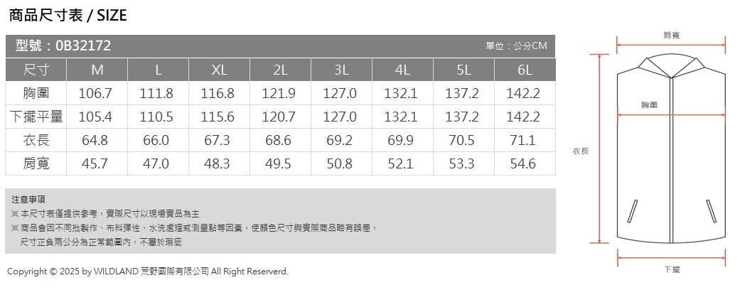 產品特性 :附收納袋/可拆帽/左內貼袋/適中寬度車格/袖襱鬆緊帶/