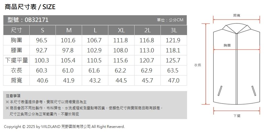 產品特性 :附收納袋/可拆帽/左內貼袋/時尚腰身剪裁、顯瘦寬度車格/