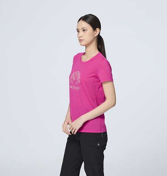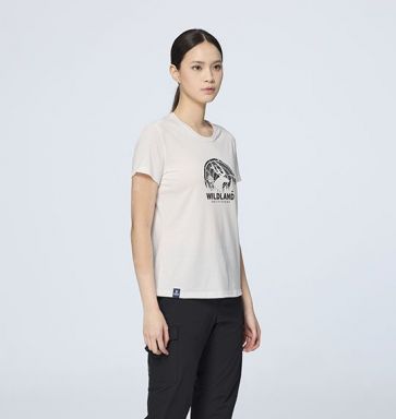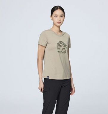 女逐鹿荒野印花機能排汗T 適用 :健行、戶外活動、旅遊、日常休閒 顏色 :110冰河藍、114灰紫色、145麻灰色、168乾燥玫瑰、 180黑水塘、199北歐白、219沙岩色、238晨光玫粉 版型 :基本版型 布種特性 : •仿棉感 •彈性佳.輕薄舒適 •吸濕排汗 •抗UV30 •有做PILLING不起球效果 設計理念 :圓領平袖設計/後領內側配色包滾/領肩鎖鏈車/ 前中樹輪印花設計/右前下擺夾標設計