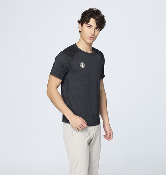 男銀纖維輕感抗菌彈性吸排衫 適用 :健行、戶外活動、旅遊 顏色 :165印黑色、211暮霧藍 版型 :基本版型 布種特性 :•透氣 •抗菌除臭 •吸濕快乾 •XT2銀纖7% •布紋雙色效果 設計理念 :•圓領拉克蘭袖設計 •衣身.剪接1/8"扒線設計 •後領內側配色彈性織帶 •右胸口LOGO印花設計